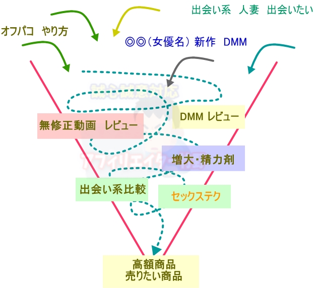 かなり難しいと感じる方も多いと思いますが、初心者の方、アフィリエイトで稼がれていない方は、TTS(徹底的に絞る)戦略とファネル(じょうろ戦略)戦略を意識してアフィリエイトをしてみてください。